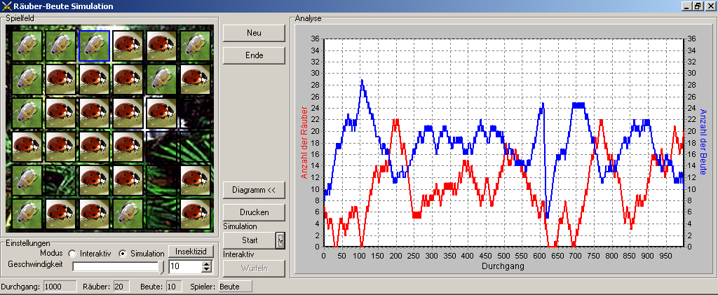 Eine einfache Räuber-Beute Simulation, die ich für den